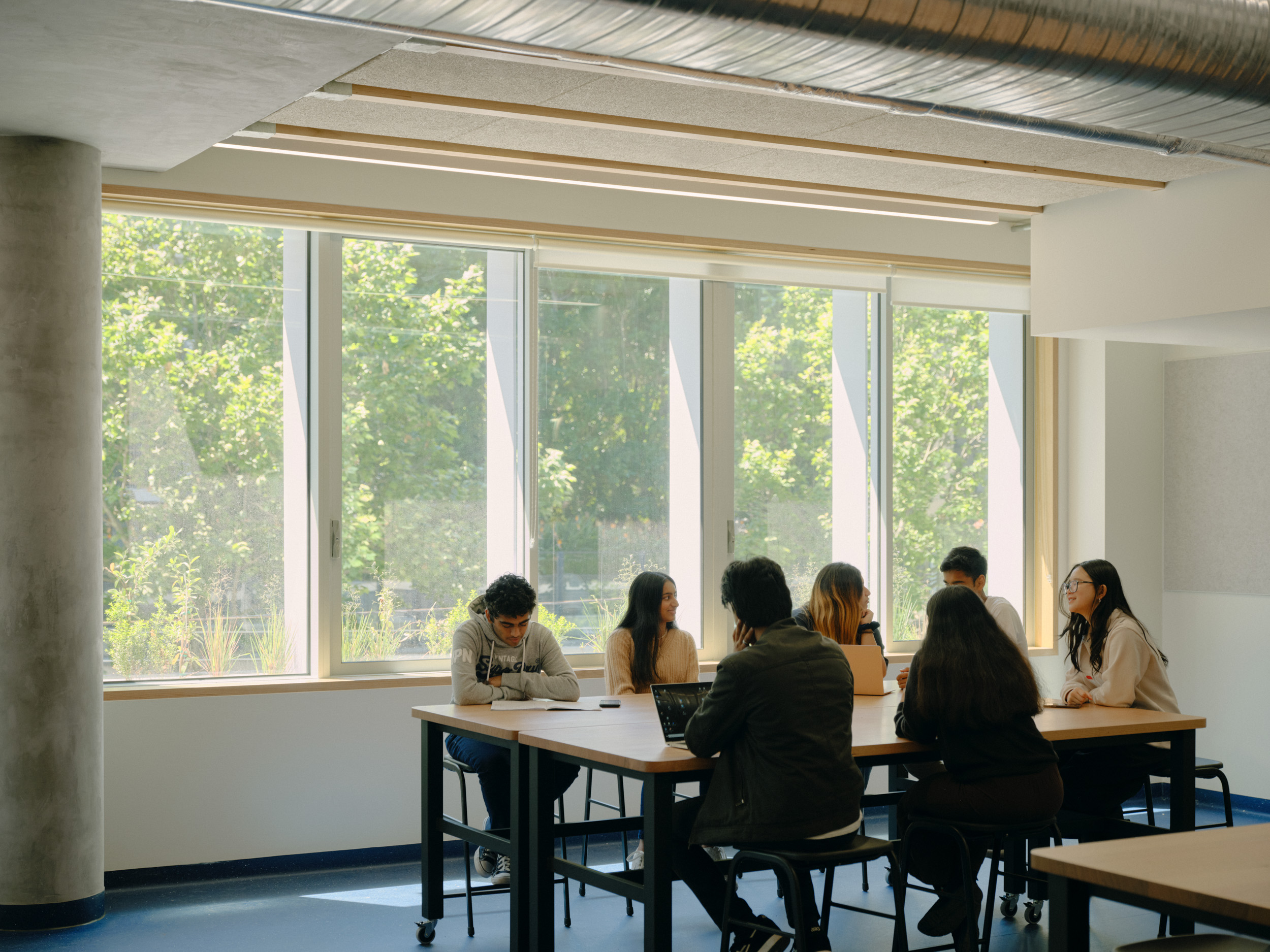 To achieve the project’s sustainability goals, Figurehead prioritised local procurement, sourcing Glulam timber from Victorian suppliers to reduce emissions and delays. Eco-friendly materials, such as Woodwool ceiling infills, were used to improve acoustics while remaining fully recyclable, and a rooftop solar PV system was installed to provide renewable energy. The successful integration of the ETFE roof system, sourced and installed with precision, capped off the project’s innovative approach, making CHES a benchmark in sustainable educational design and construction.