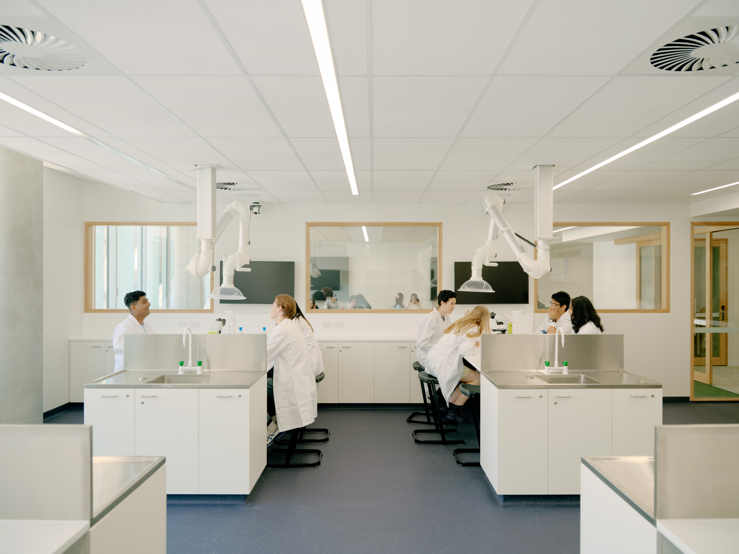 CHES also required two modernised PC2 laboratories, meeting stringent containment and ventilation standards for advanced research. Figurehead collaborated with independent laboratory specialists, ensuring seamless benchtops, compliant chemical storage units, and precision air filtration systems. These facilities were meticulously inspected and certified to ensure compliance, resulting in cutting-edge spaces equipped for high-level experimentation.